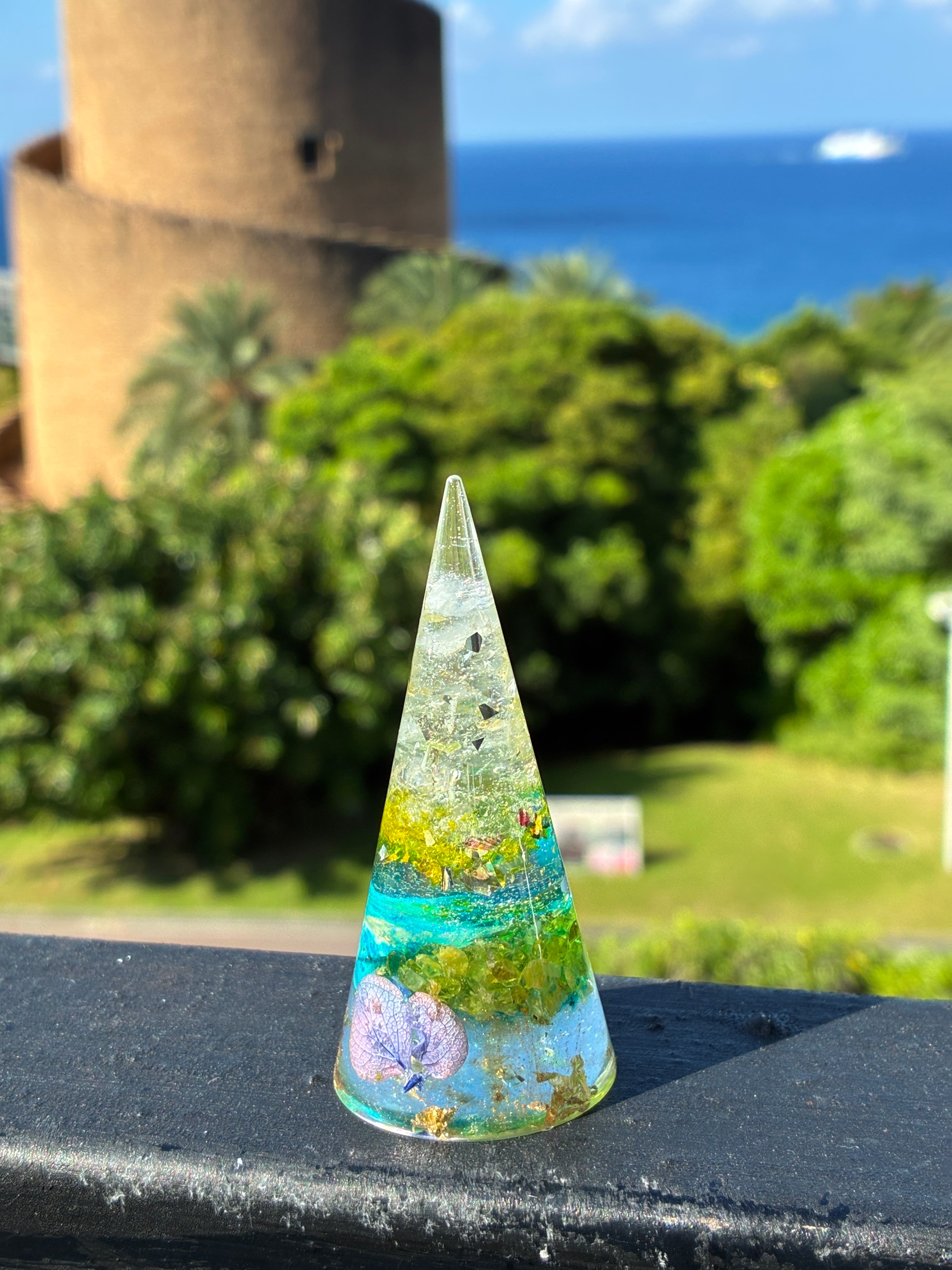 美しいターコイズブルーの円錐形オルゴナイトは、心を解放し、ポジティブなエネルギーを呼び寄せる存在になります。日常の中で、深いリラクゼーションとインスピレーションの源となることでしょう!