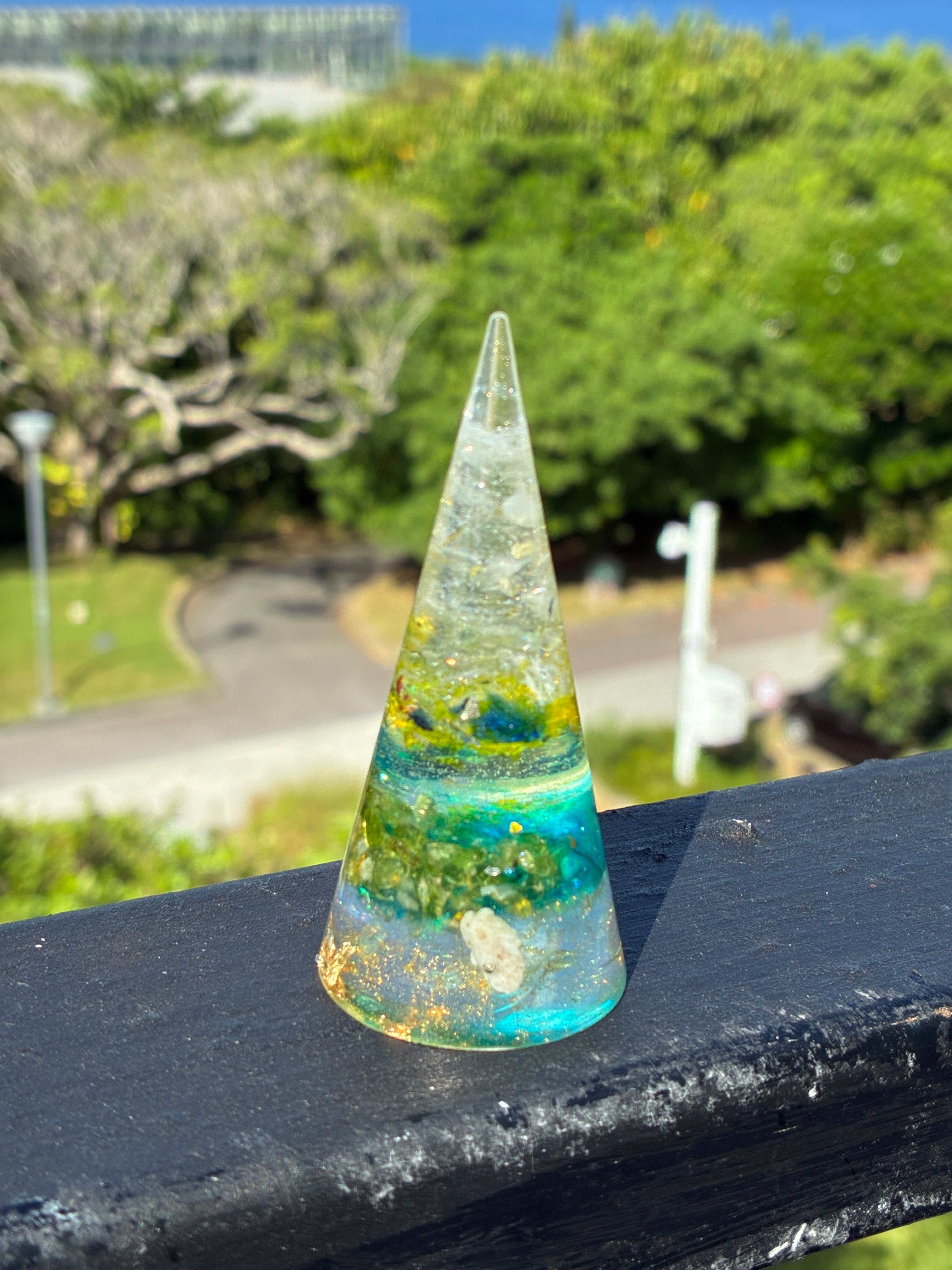 ■神秘的なターコイズブルーの円錐形オルゴナイト■