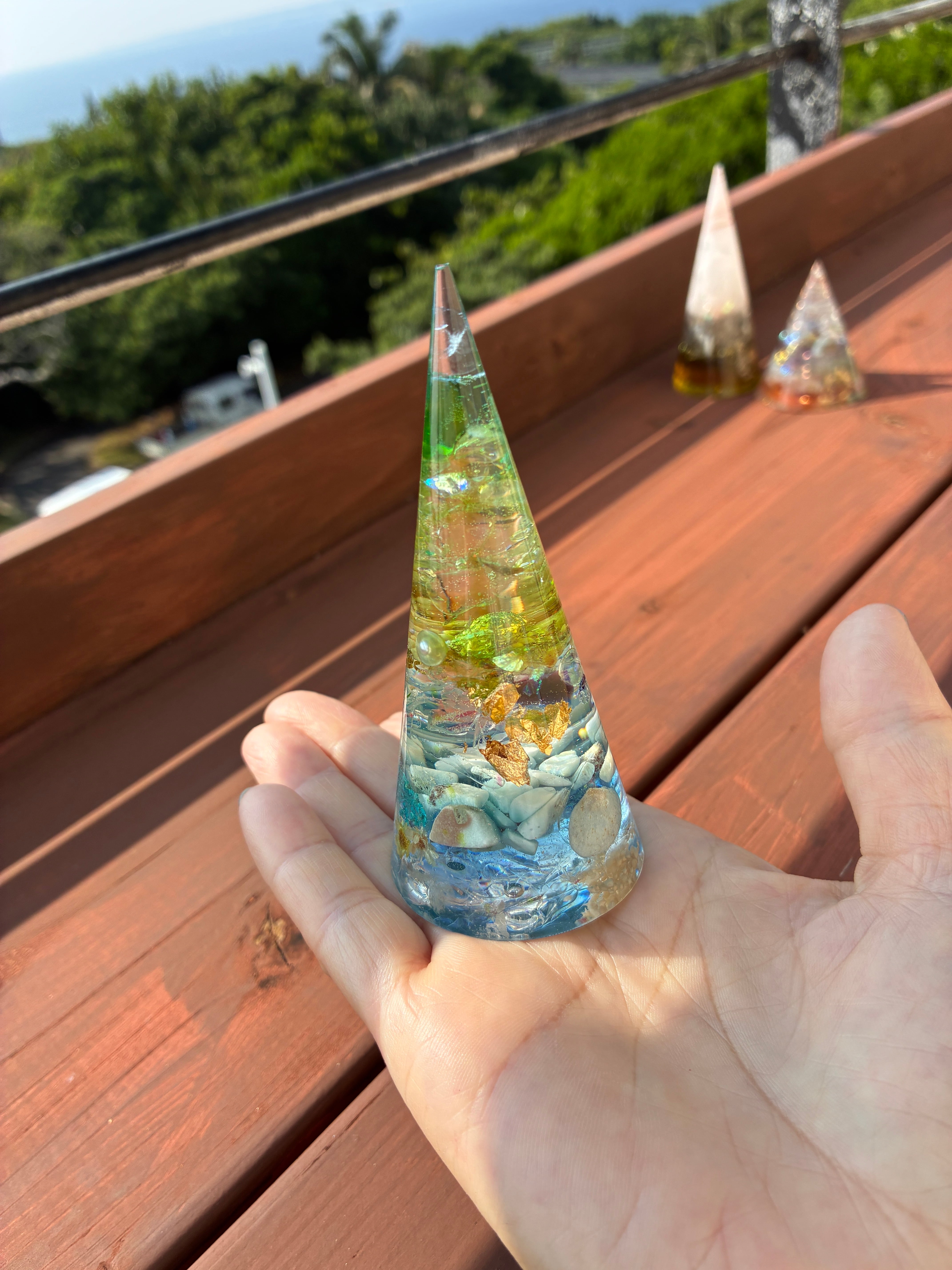 ■安らぎのラリマーのグリーンとブルーのグラデーションオルゴナイト■